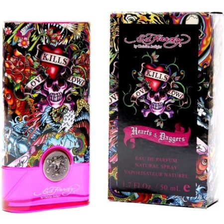 Explore your edgy side with this Ed Hardy Hearts & Daggers eau de parfum spray, released by Christian Audigier in 2009. Perfect for the rebel princess within, this alluring women’s fragrance has a firestorm of accords to delight the senses and play to the true romantic at heart. Red apple and blood orange form a top-note composition that’s juicy and fun, while a heart of mango keeps the invigorating vibe going. Musk and amber on the dry down provide an exotic finish to this adventurous scent.